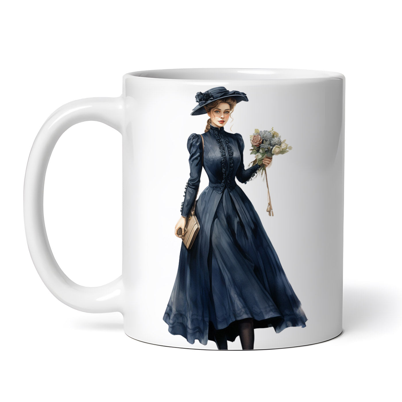Cana ceramica, Moda victoriana femeie cu rochie Clare, NO6276, 330 ml, Multicolor