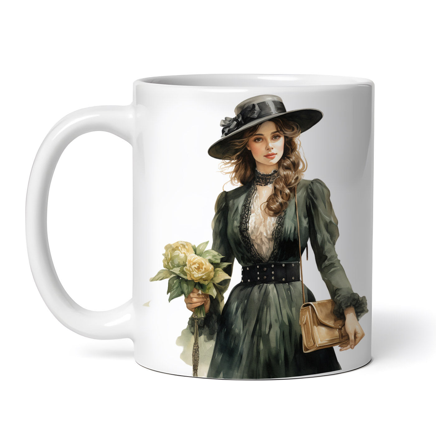Cana ceramica, Moda victoriana femeie cu rochie Jessica, NO2523, 330 ml, Multicolor