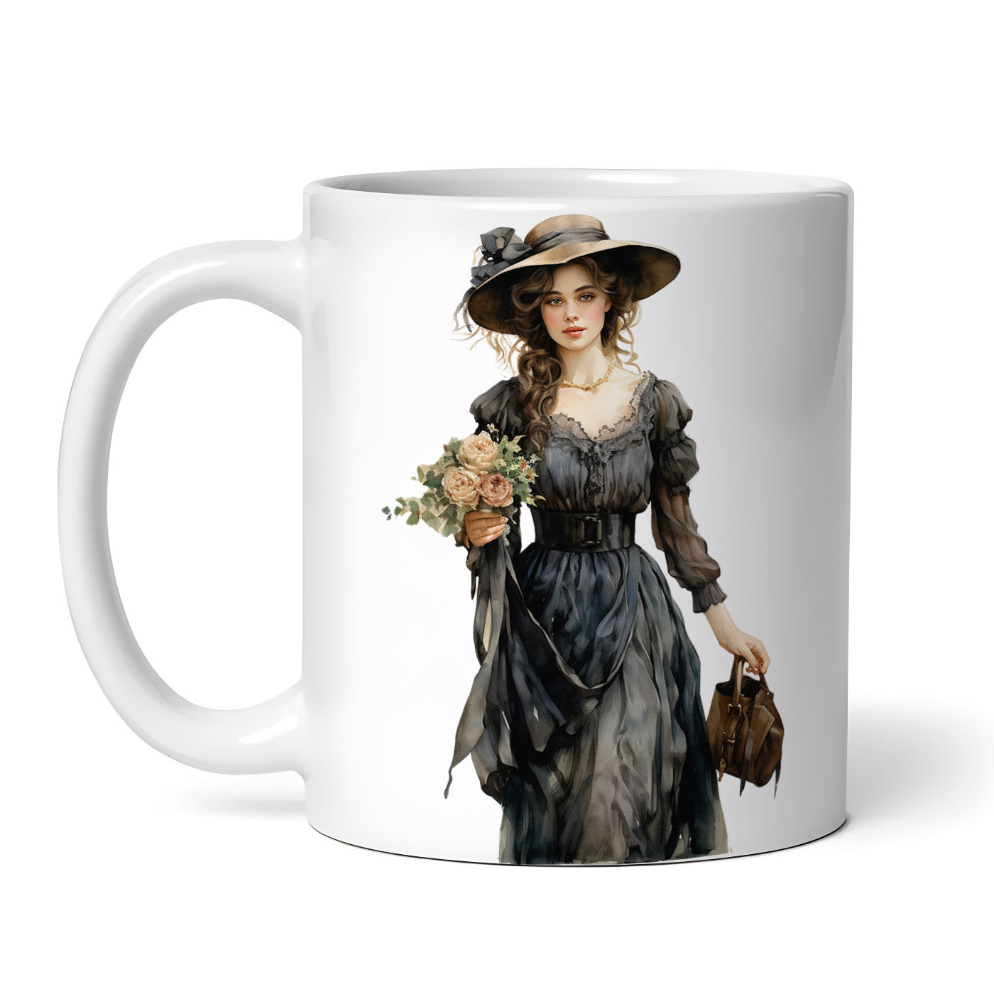 Cana ceramica, Moda victoriana femeie cu rochie Moika, NO6539, 330 ml, Multicolor