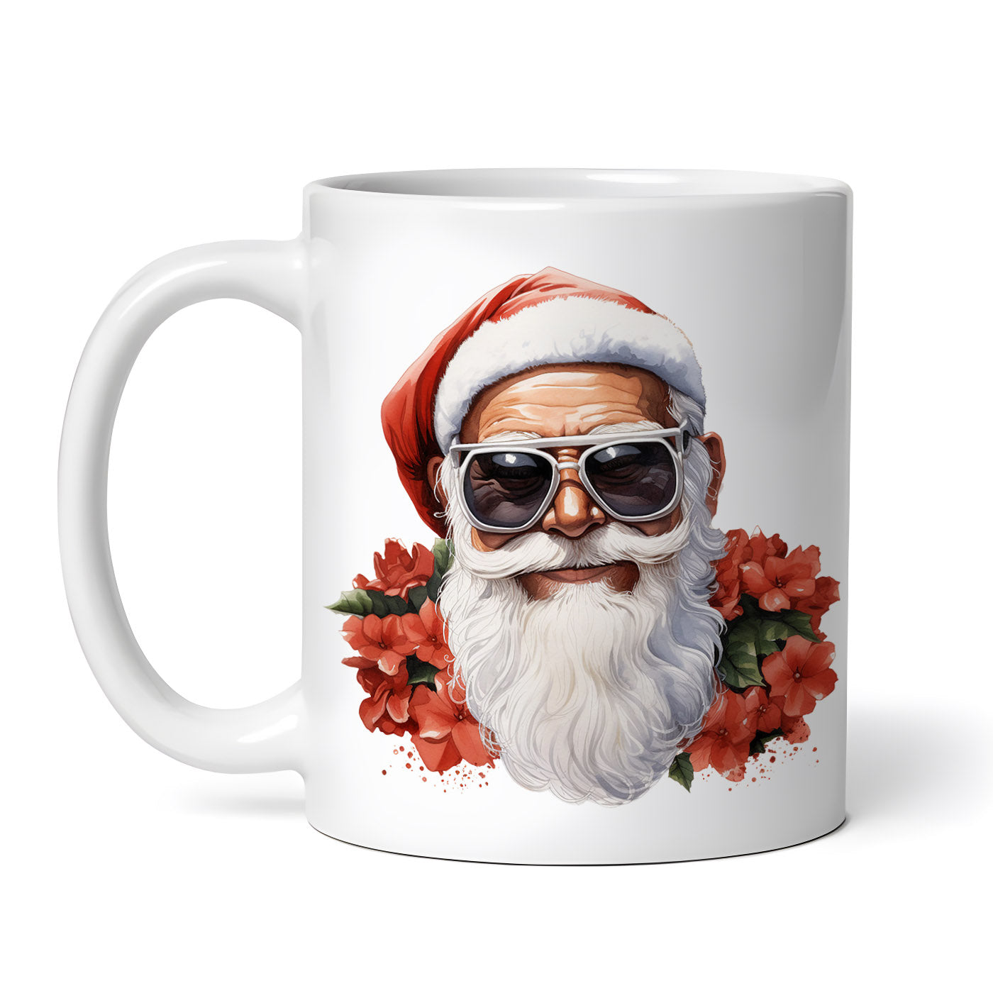 Cana ceramica, Mos Craciun cu flori, NO6415, 330 ml, Multicolor
