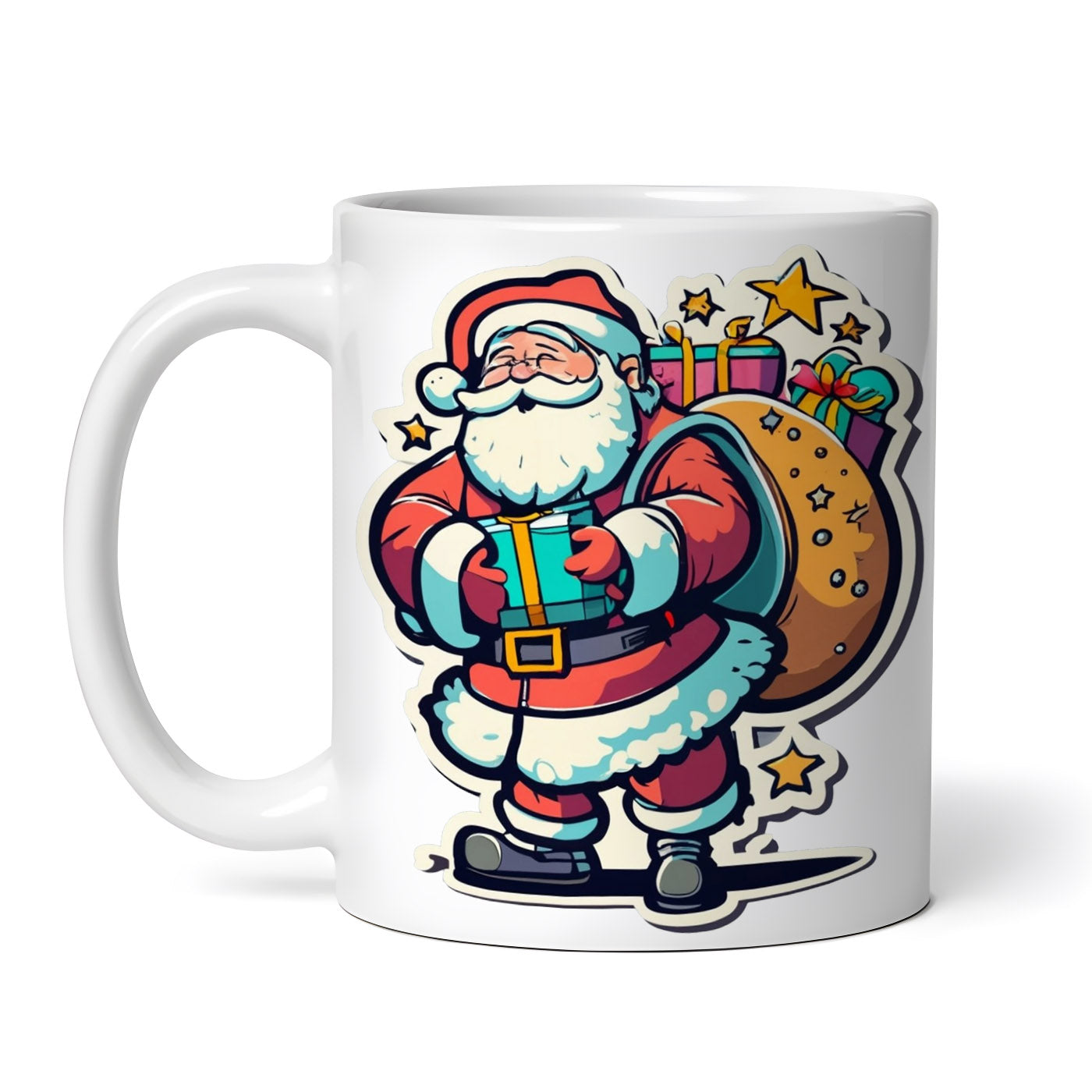 Cana ceramica, Mos Craciun cu sacul cu jucarii si cadou in mana, NO6170, 330 ml, Multicolor