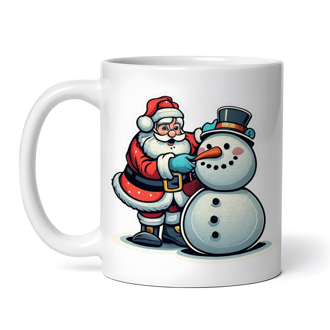 Cana ceramica, Mos Craciun ii pune nas omului de zapada, NO1932, 330 ml, Multicolor