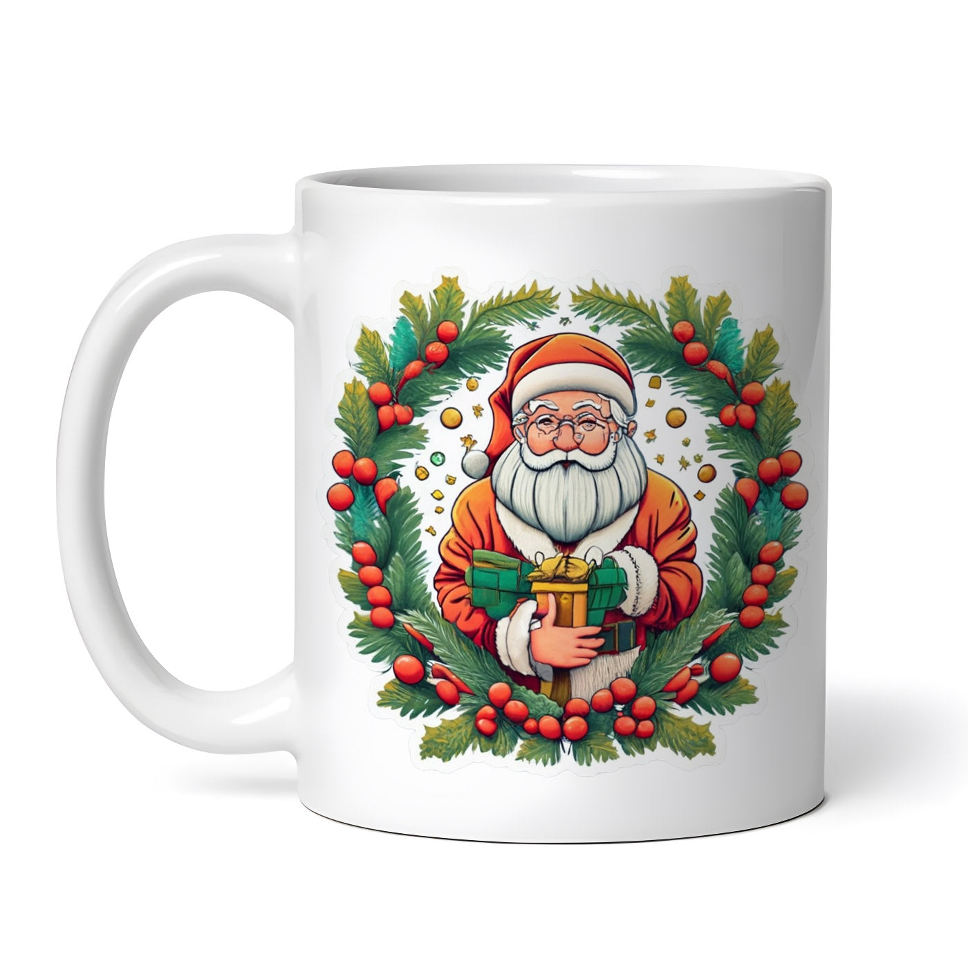 Cana ceramica, Mos Craciun in ghirlanda de brad, NO1344, 330 ml, Multicolor