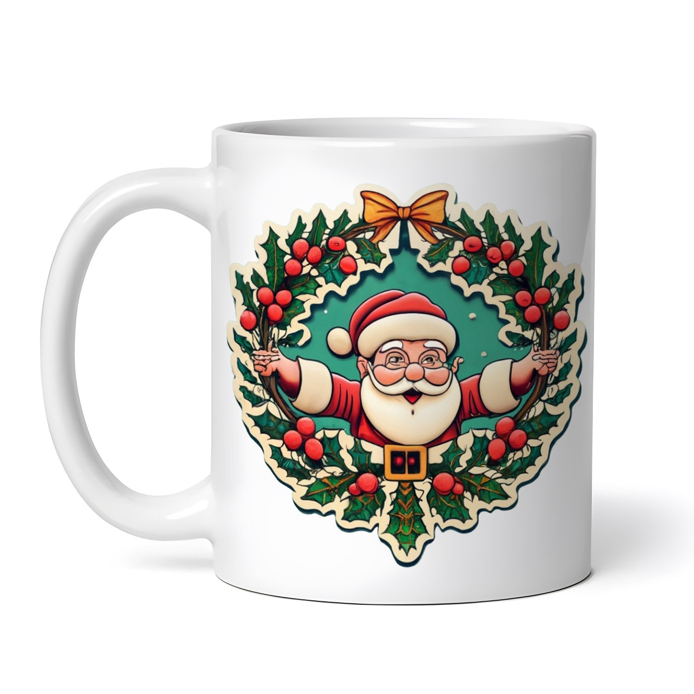 Cana ceramica, Mos Craciun si ghirlanda cu fundita, NO4050, 330 ml, Multicolor