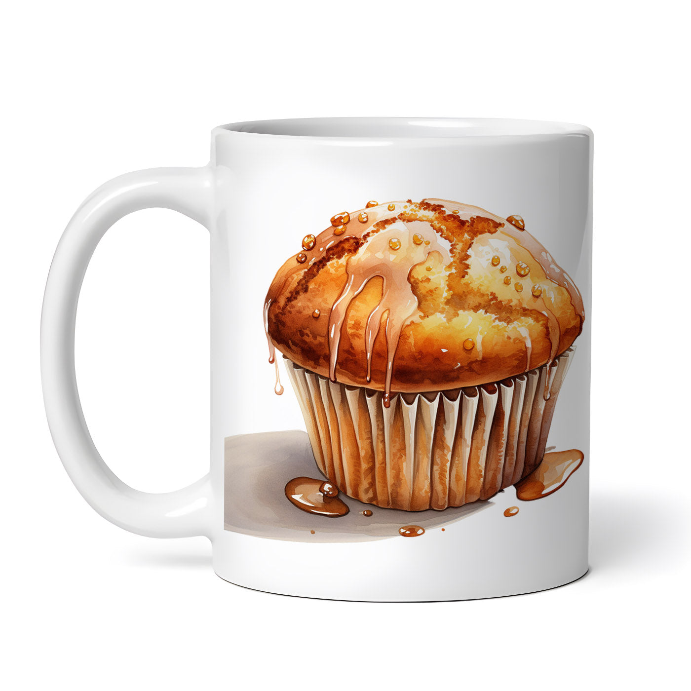 Cana ceramica, Muffin cu glazura caramel, NO1411, 330 ml, Multicolor