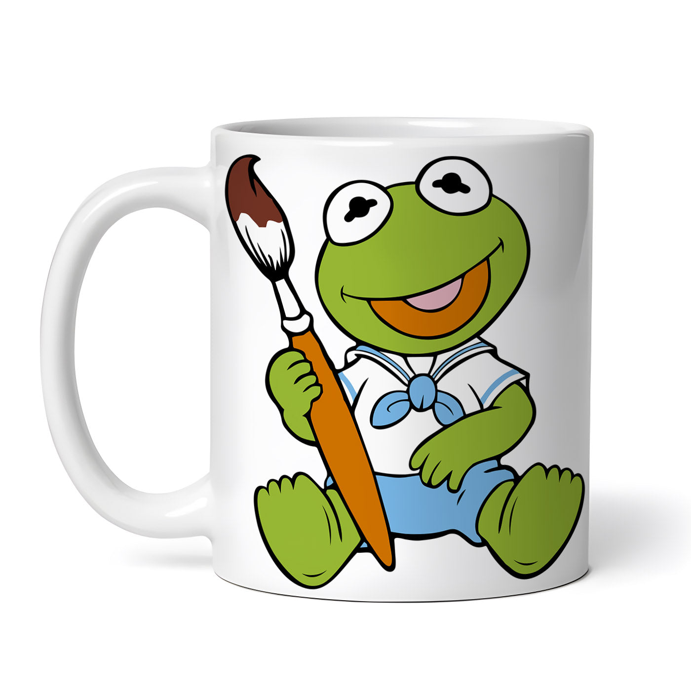 Cana ceramica, Muppet Kermit copil picteaza, NO069, 330 ml, Multicolor