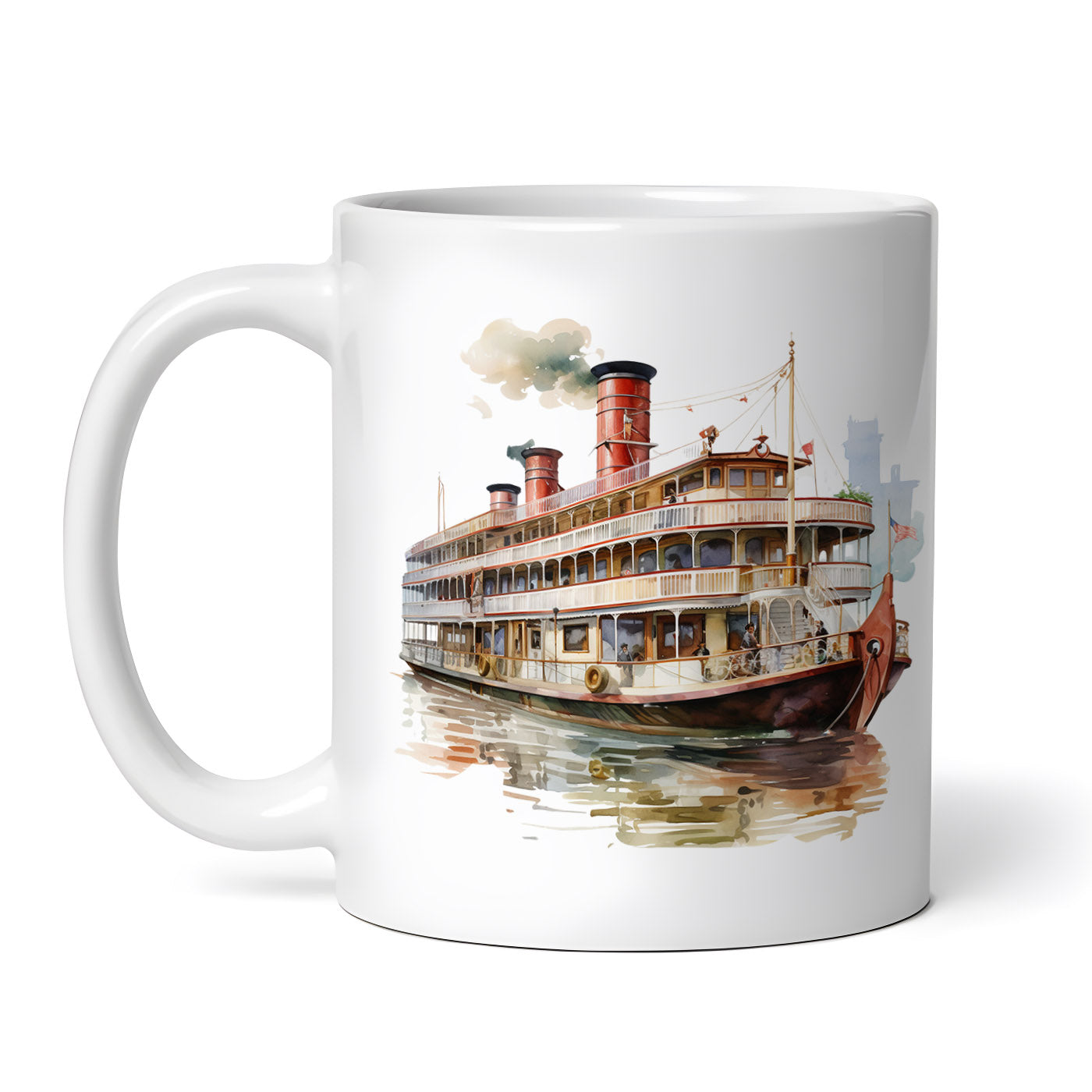 Cana ceramica, Nava fluviala cu aburi alb rosu, NO5152, 330 ml, Multicolor