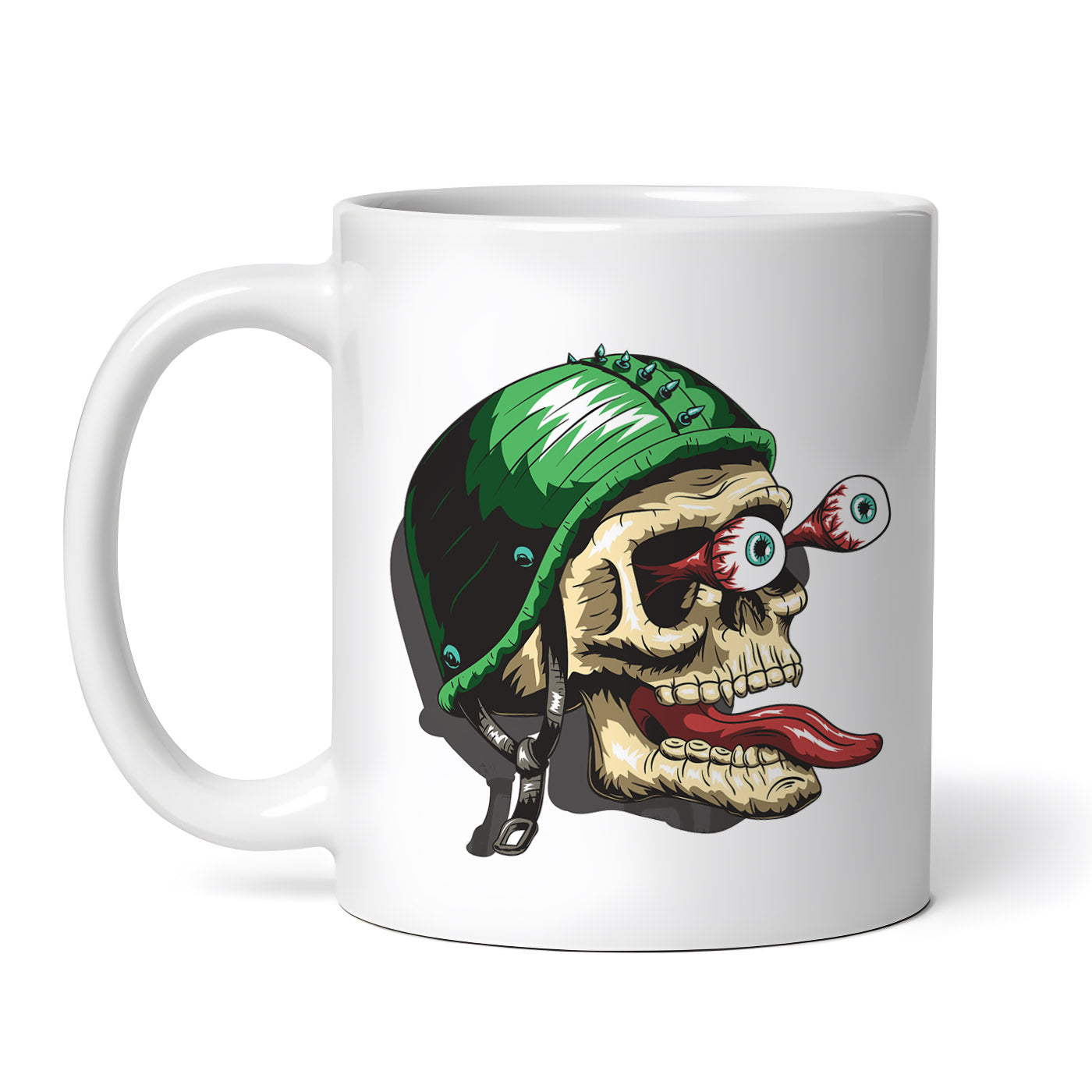 Cana ceramica, No fear no pain Craniu cu casca de motociclist, NO5461, 330 ml, Multicolor