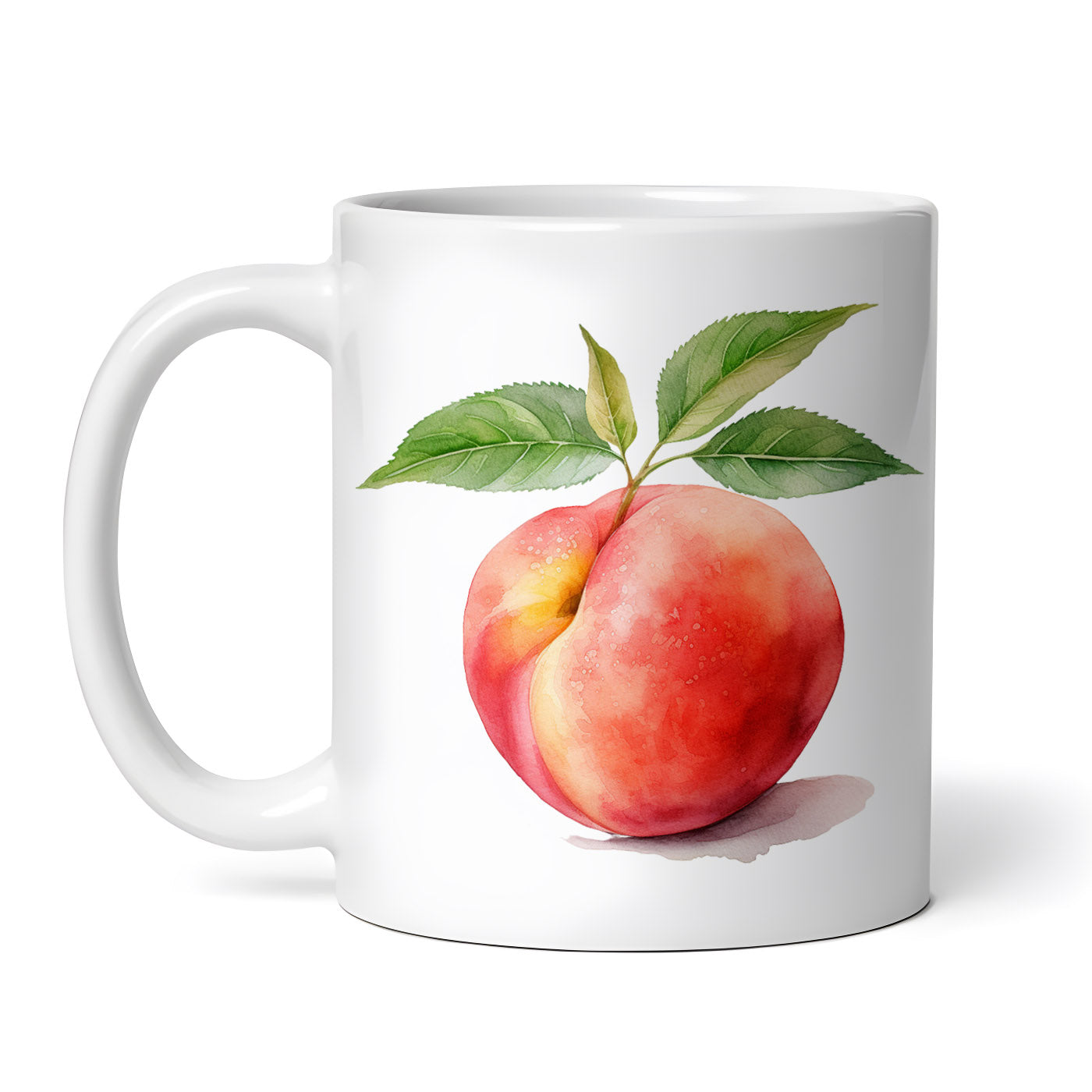 Cana ceramica, O piersica cu frunze, NO6545, 330 ml, Multicolor