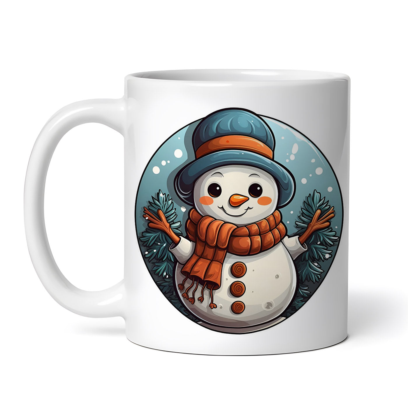 Cana ceramica, Omul de zapada cu caciula albastra, NO110, 330 ml, Multicolor