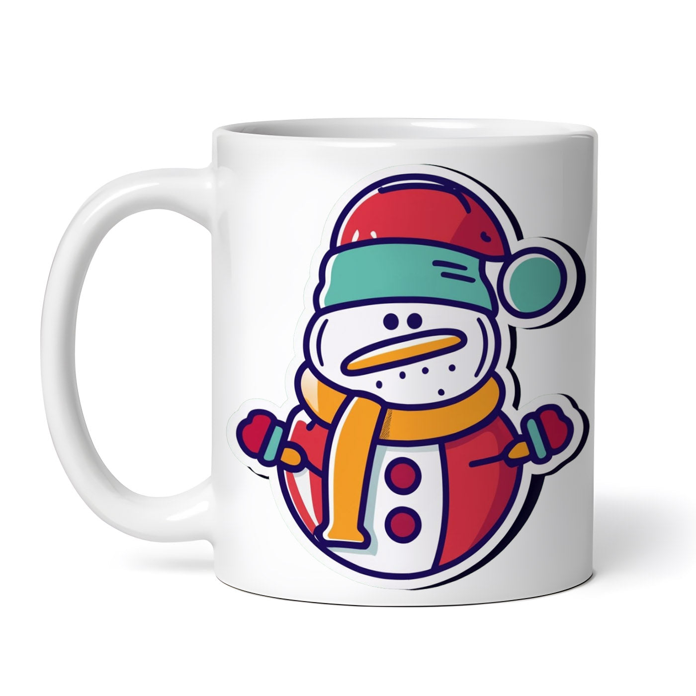 Cana ceramica, Omul de zapada cu geaca rosie, NO5363, 330 ml, Multicolor