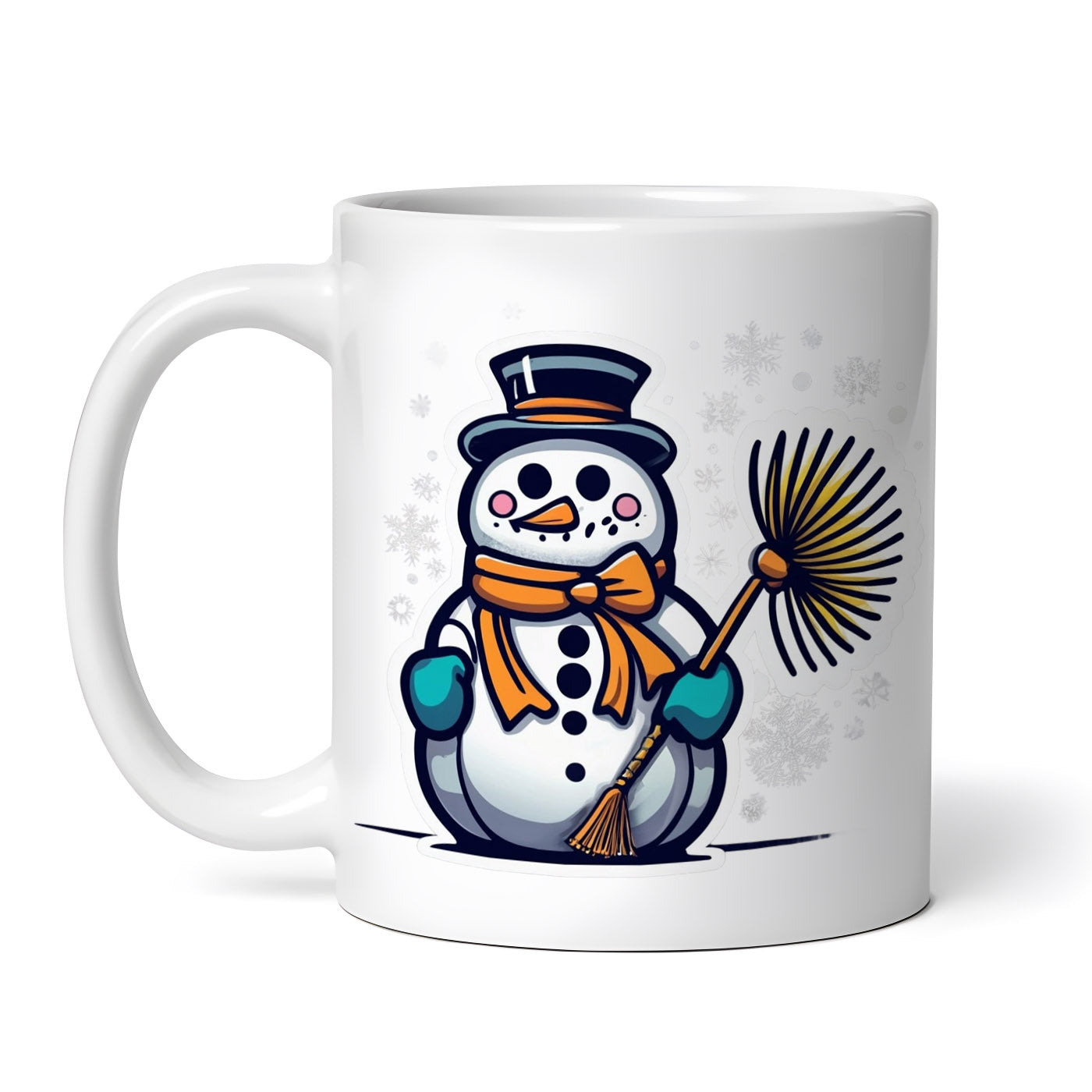 Cana ceramica, Omul de zapada cu matura, NO1061, 330 ml, Multicolor