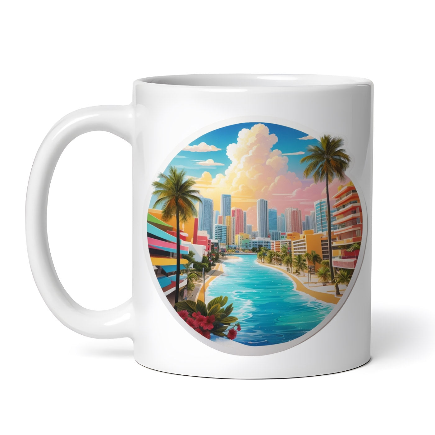 Cana ceramica, Orasul Cancun cu vedere la apa, NO7928, 330 ml, Multicolor