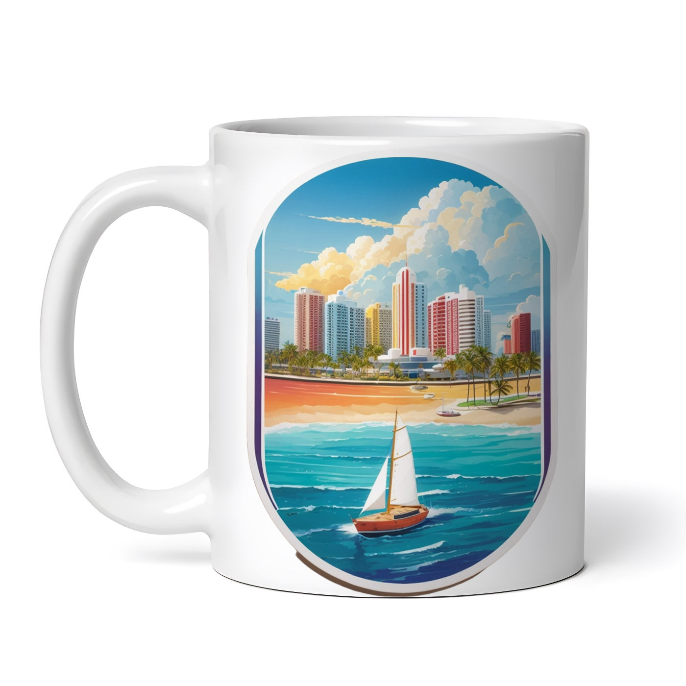 Cana ceramica, Orasul Cancun vedere la plaja, NO7929, 330 ml, Multicolor