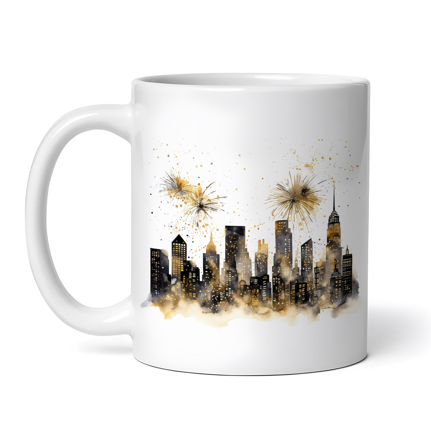 Cana ceramica, Orasul cu artificii de Anul Nou, NO6001, 330 ml, Multicolor