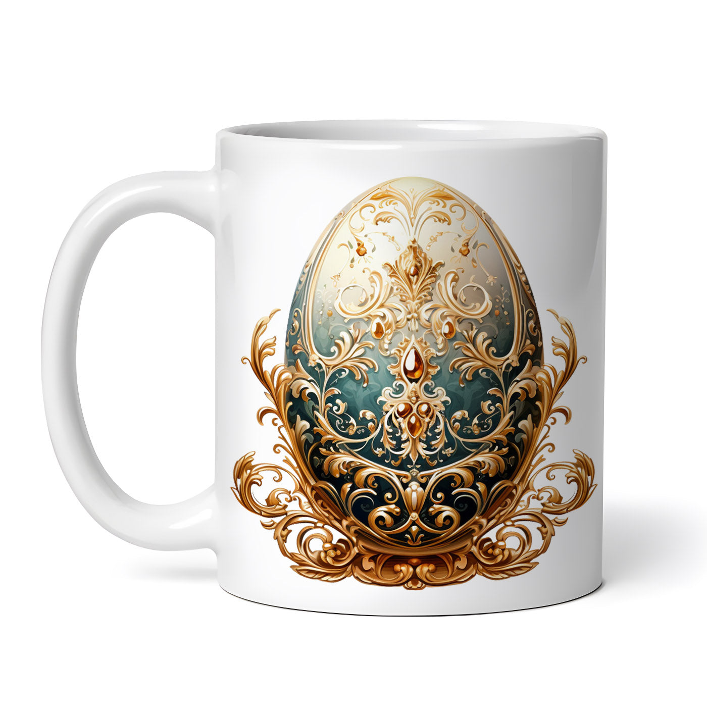 Cana ceramica, Oua decorate Dantela de aur, NO1425, 330 ml, Multicolor