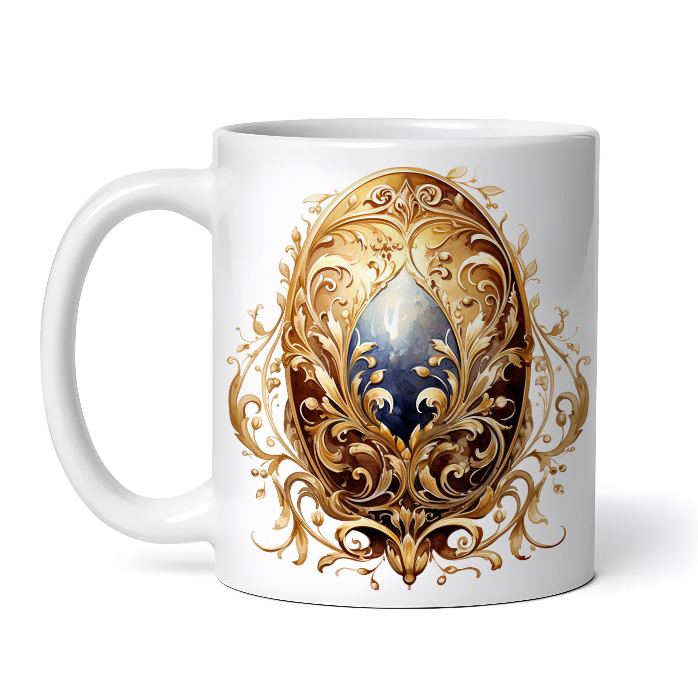 Cana ceramica, Oua decorate Oglinda aurita, NO903, 330 ml, Multicolor