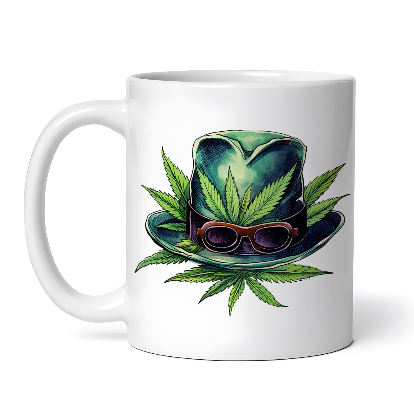 Cana ceramica, Palarie cu frunze de canabis si ochelari, NO943, 330 ml, Multicolor
