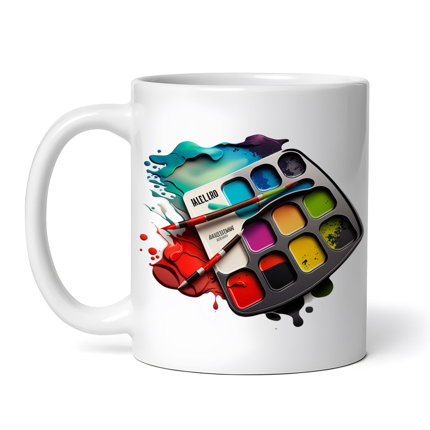 Cana ceramica, Paleta de pictura cu doua pensule, NO11126, 330 ml, Multicolor