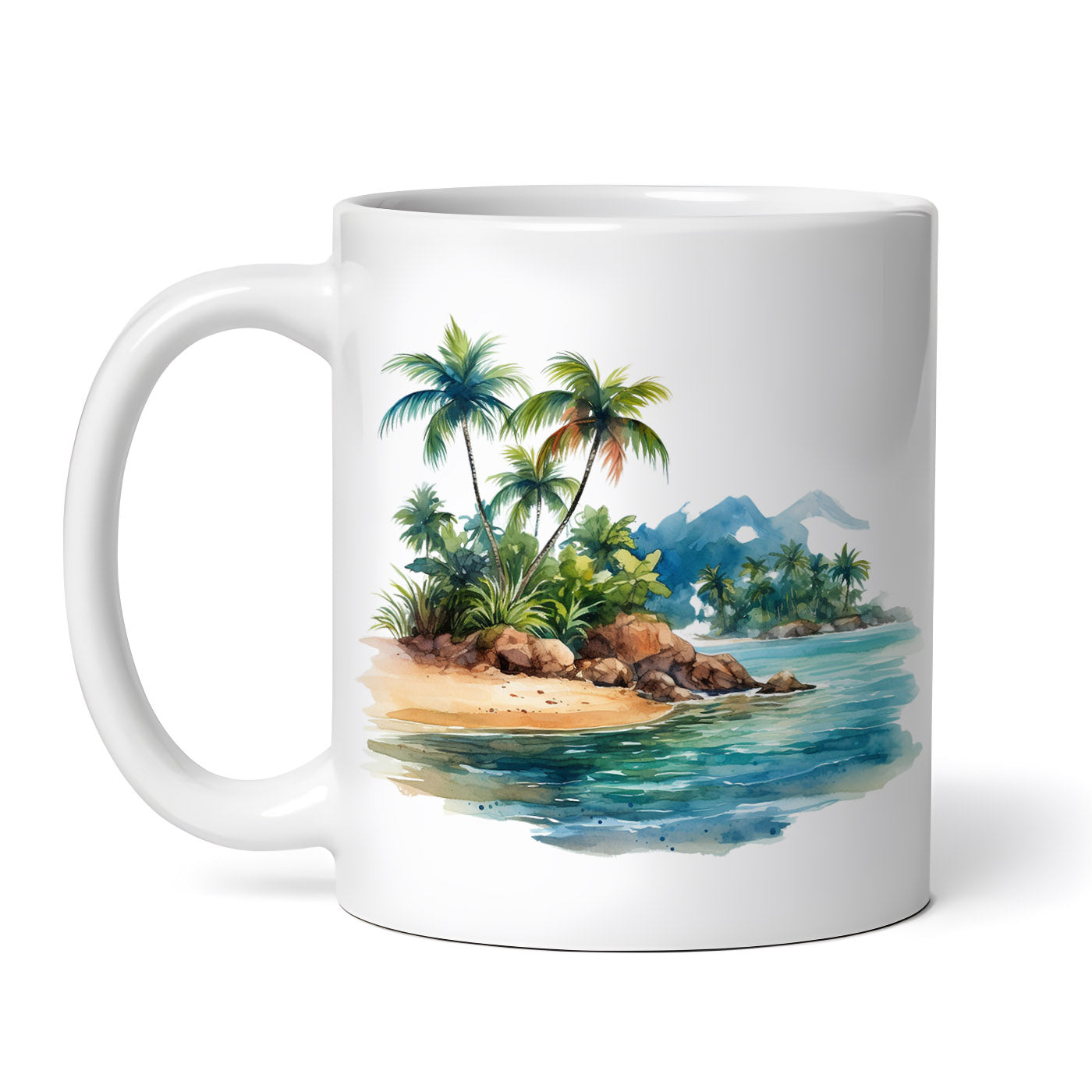 Cana ceramica, Palmieri pe rau, NO794, 330 ml, Multicolor