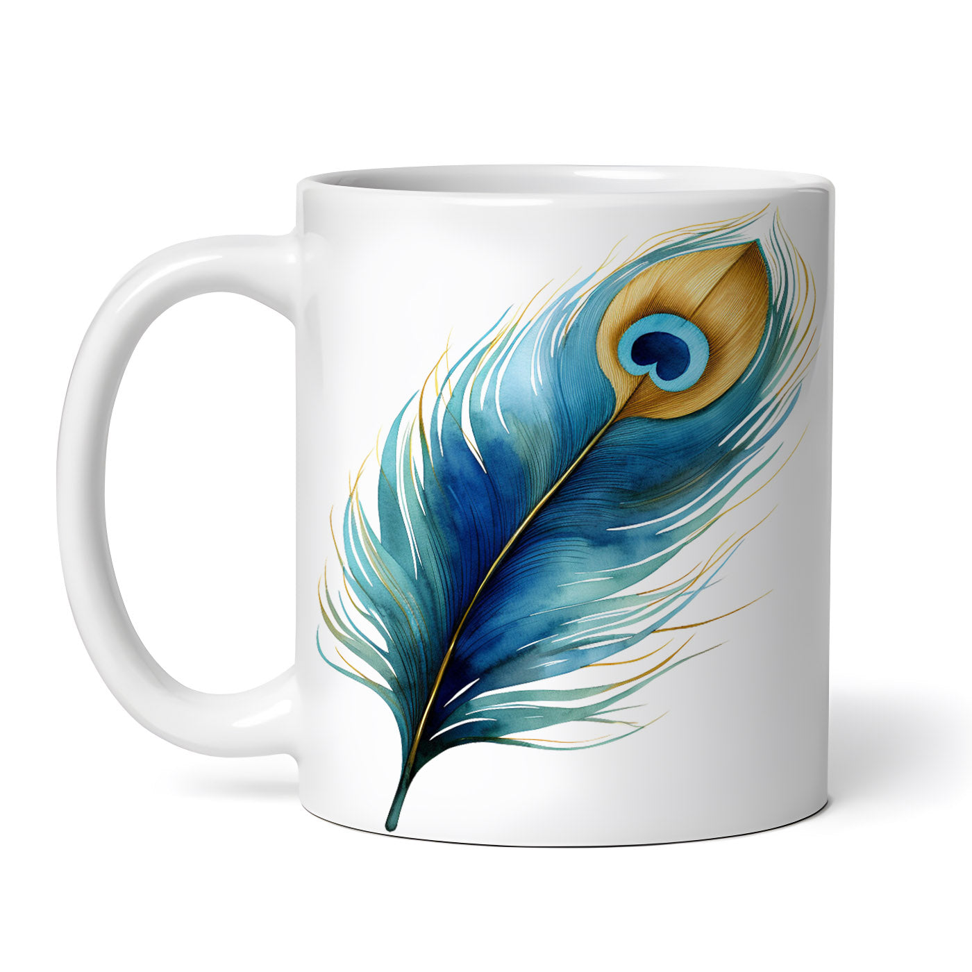 Cana ceramica, Pana de paun Beautiful, NO897, 330 ml, Multicolor