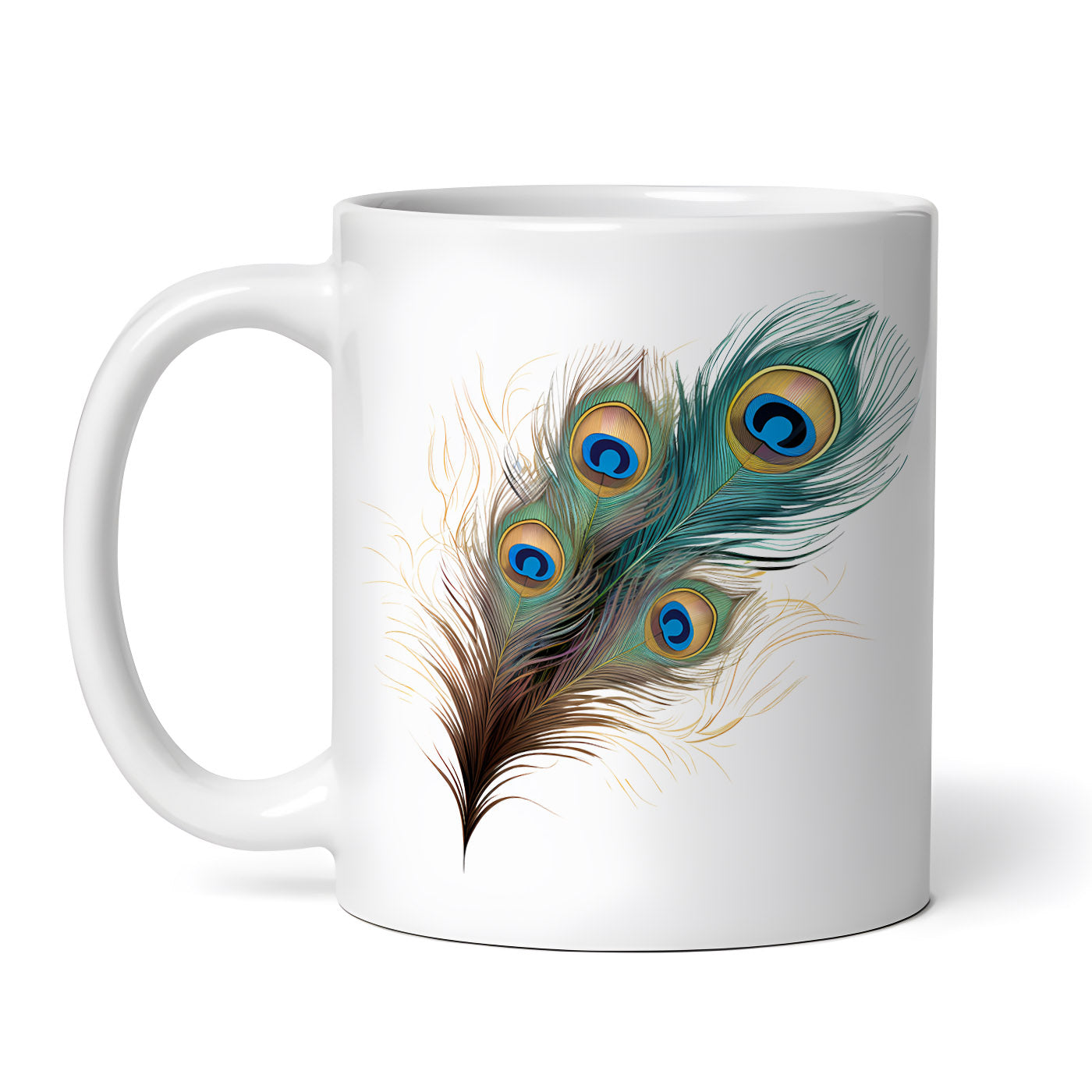 Cana ceramica, Pana de paun Levy, NO2377, 330 ml, Multicolor
