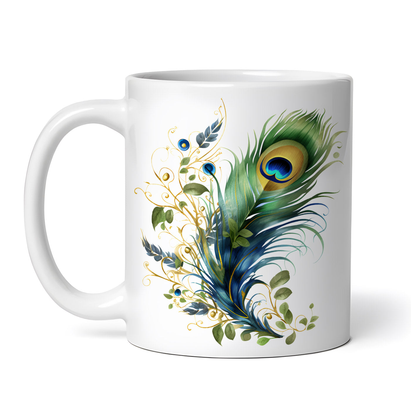 Cana ceramica, Pana de paun Lily, NO4974, 330 ml, Multicolor