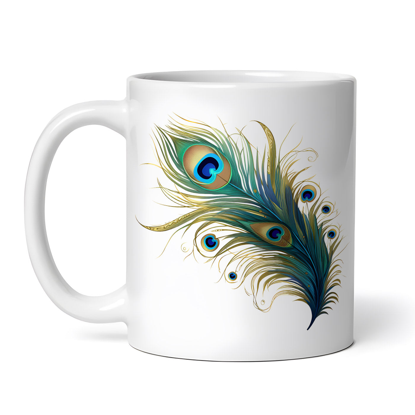 Cana ceramica, Pana de paun Liss, NO784, 330 ml, Multicolor
