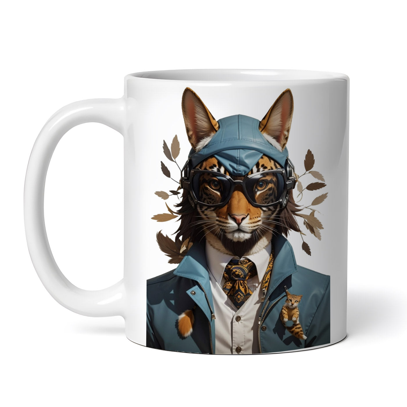 Cana ceramica, Pantera in costum cu ochelari de soare, NO7337, 330 ml, Multicolor