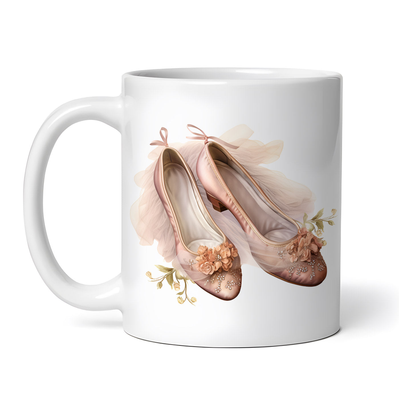 Cana ceramica, Pantofi cu flori roz, NO3069, 330 ml, Multicolor