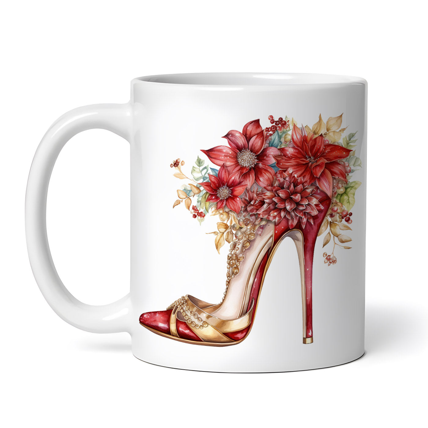 Cana ceramica, Pantofi cu toc pentru craciun Arabela, NO854, 330 ml, Multicolor