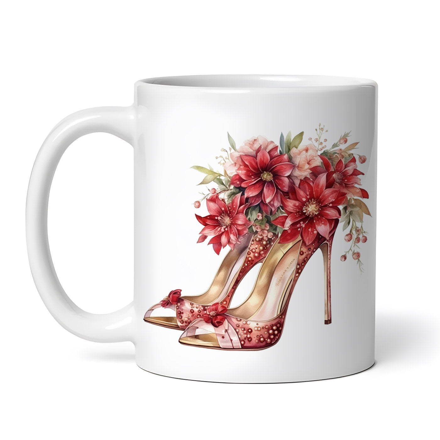 Cana ceramica, Pantofi cu toc pentru craciun Ava, NO2606, 330 ml, Multicolor