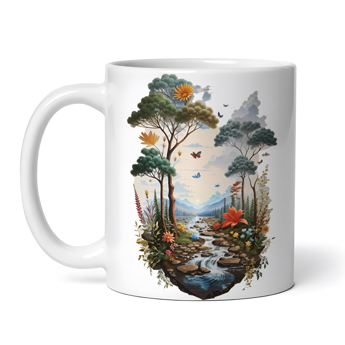 Cana ceramica, Peisaj pe rau, NO6967, 330 ml, Multicolor