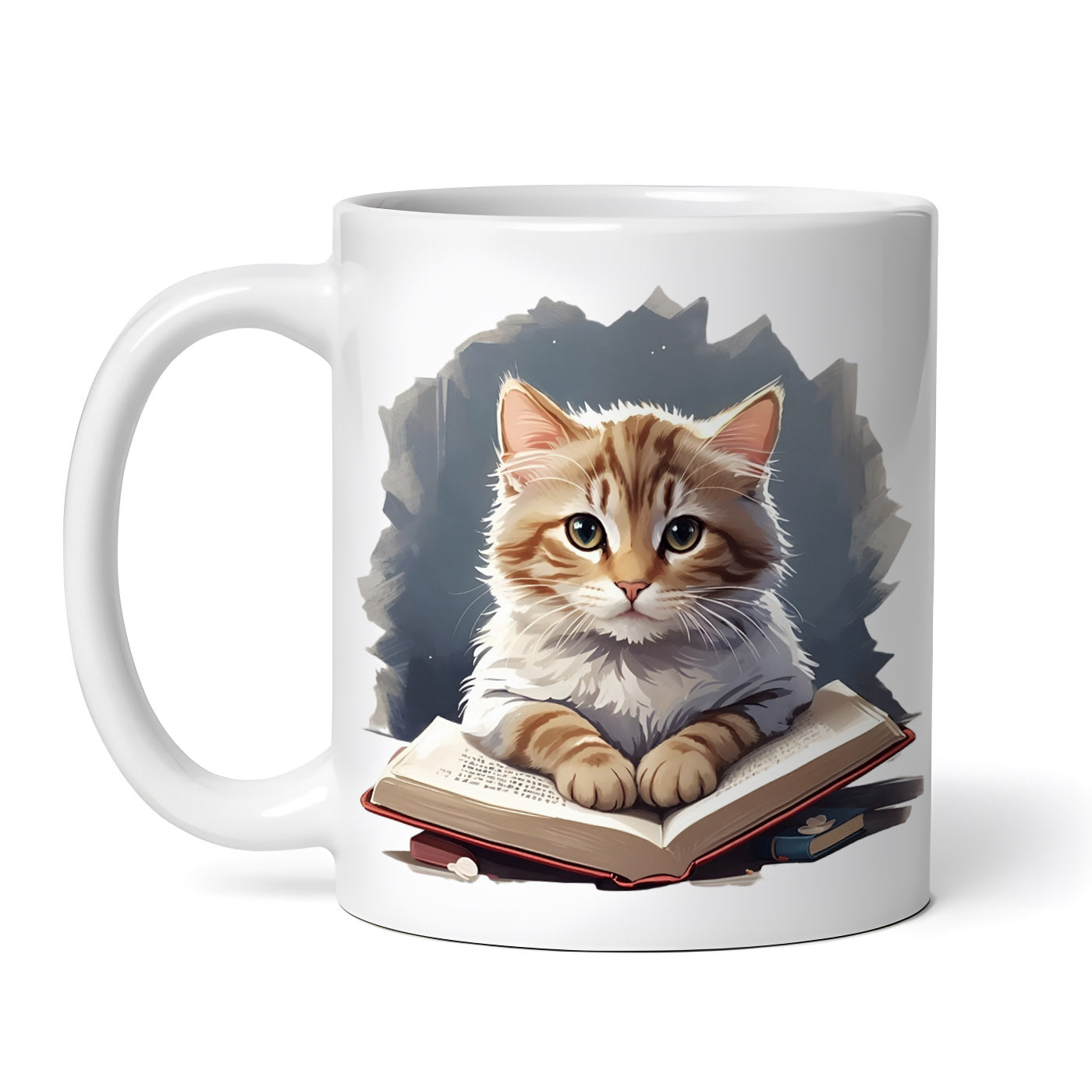 Cana ceramica, Pisicuta cititoare, NO6981, 330 ml, Multicolor