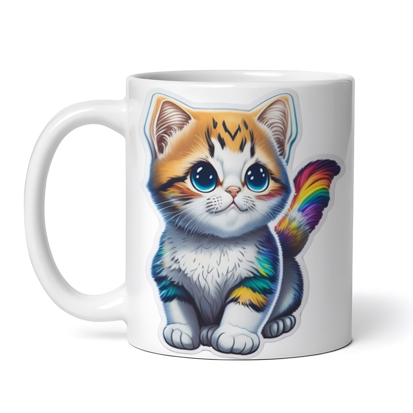 Cana ceramica, Pisicuta cu coada curcubeu, NO7513, 330 ml, Multicolor