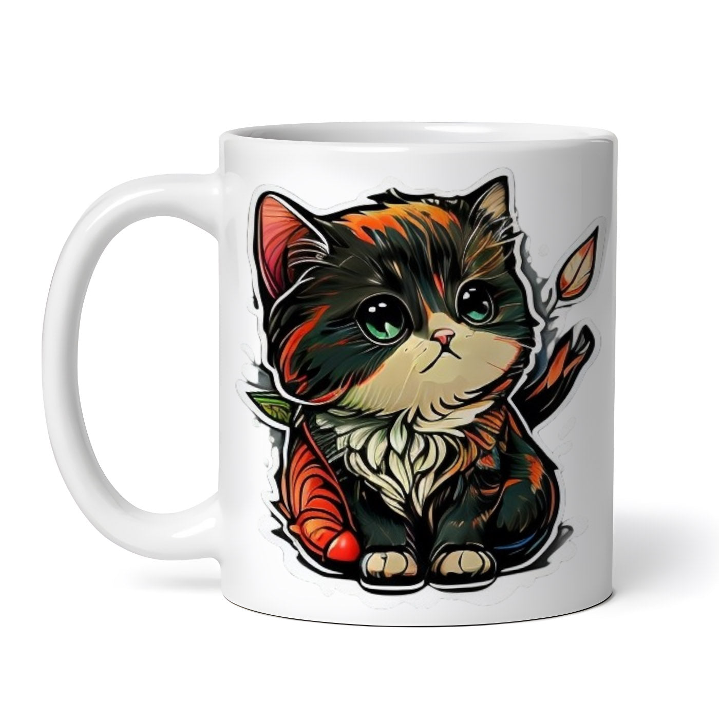Cana ceramica, Pisicuta cu ochi tristi, NO7441, 330 ml, Multicolor