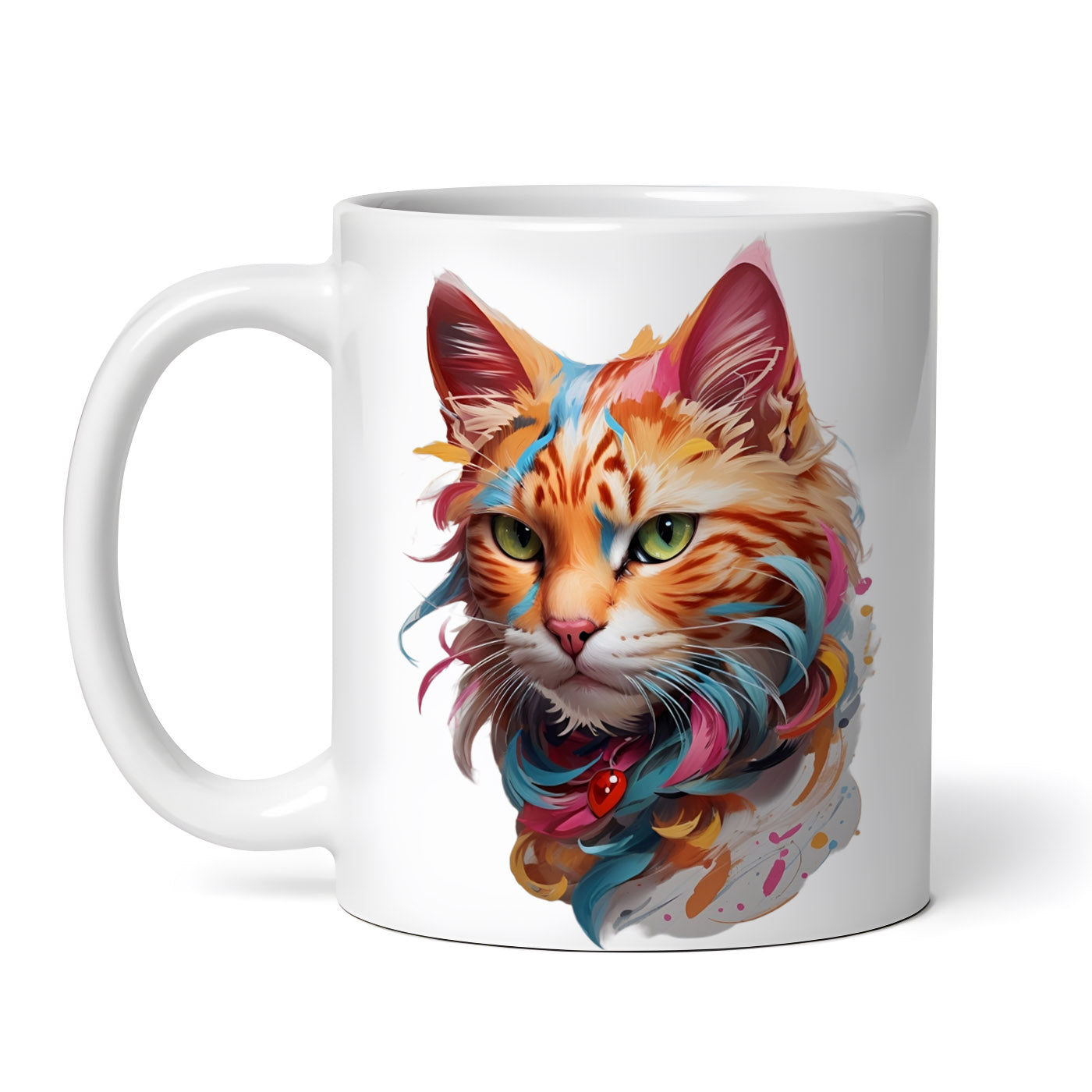 Cana ceramica, Pisicuta flacaruta, NO6938, 330 ml, Multicolor