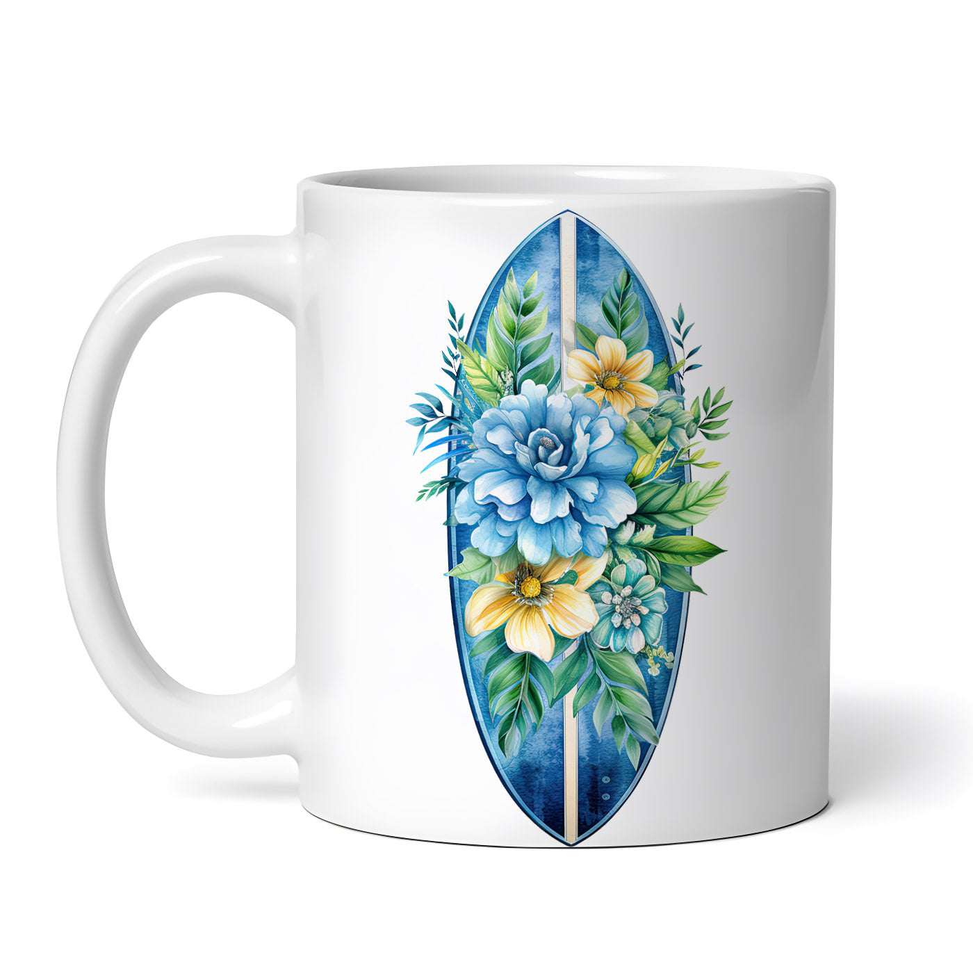 Cana ceramica, Placa de surf cu flori, NO382, 330 ml, Multicolor