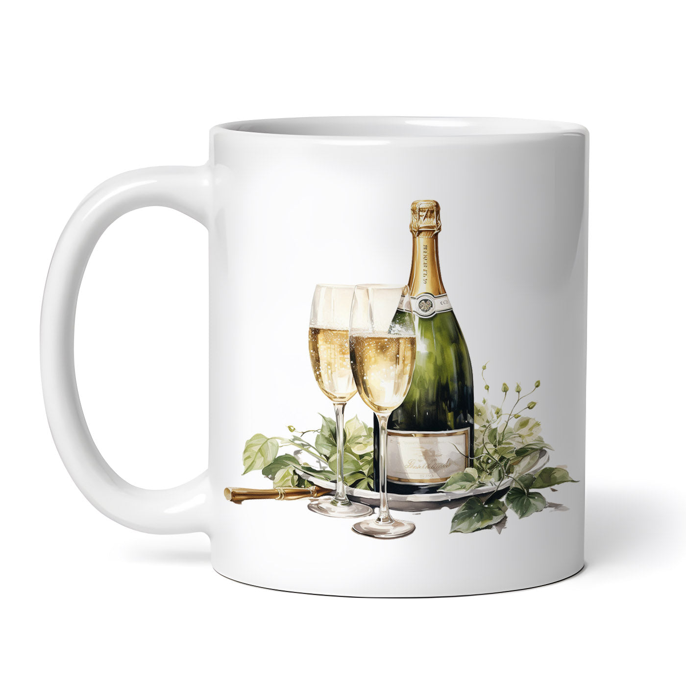 Cana ceramica, Platou cu sticla de sampanie, NO5916, 330 ml, Multicolor