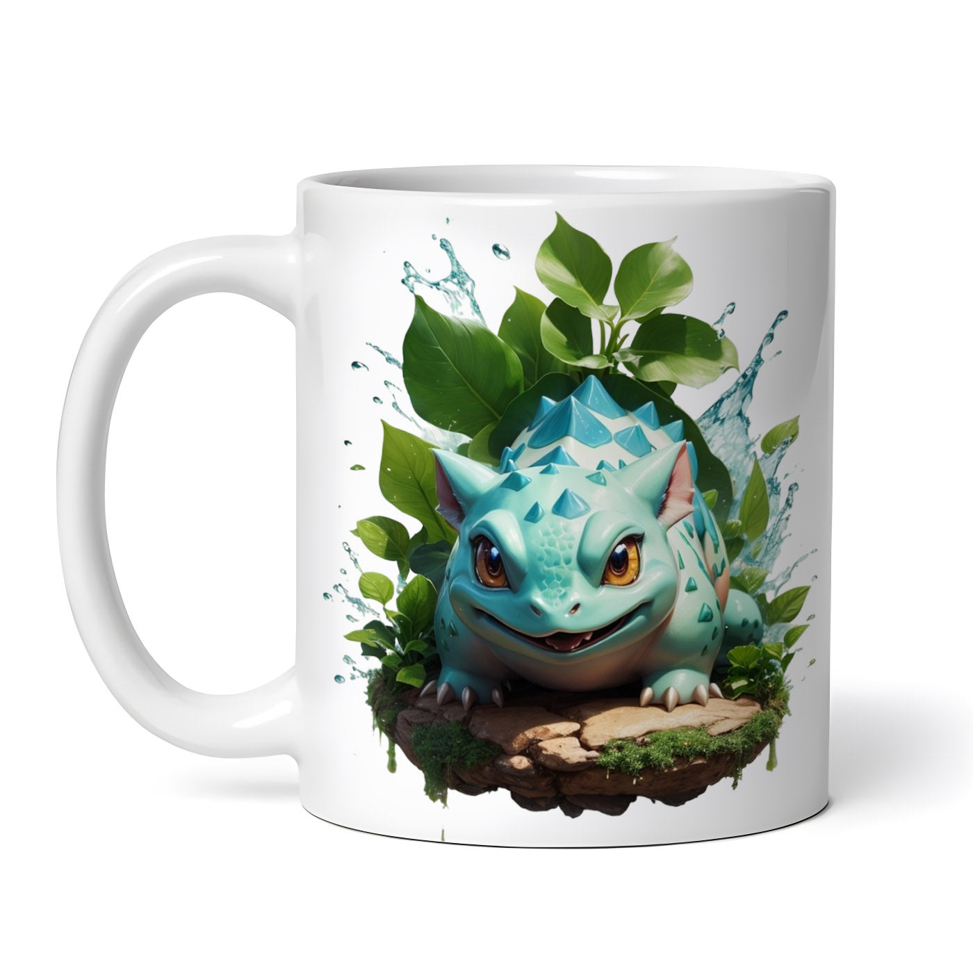 Cana ceramica, Pokemon bulbasaur pe pietre, NO7185, 330 ml, Multicolor