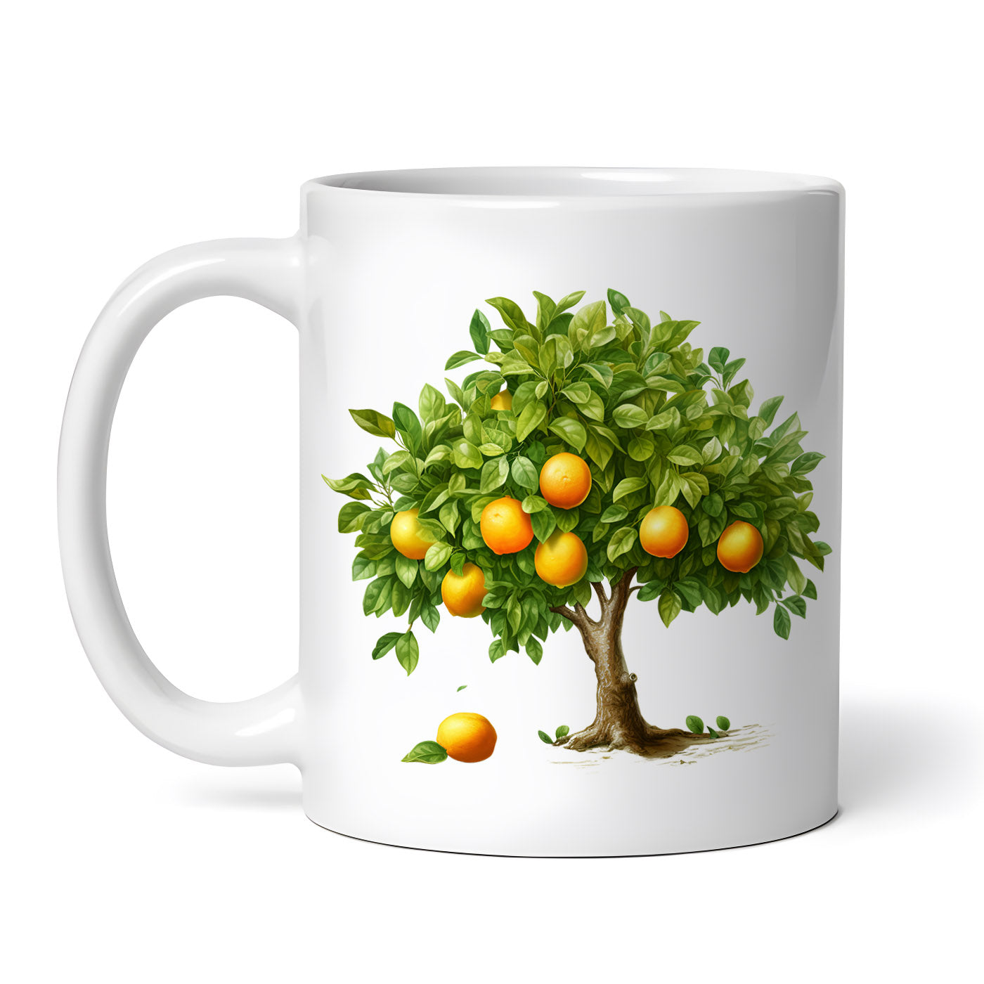 Cana ceramica, Portocal cu fructe, NO224, 330 ml, Multicolor