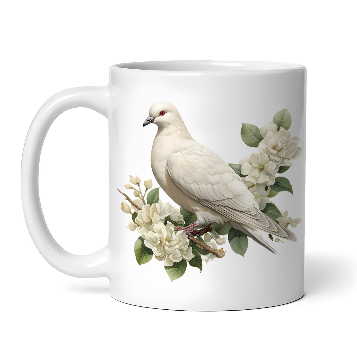 Cana ceramica, Porumbel alb pe creanga cu flori, NO4941, 330 ml, Multicolor