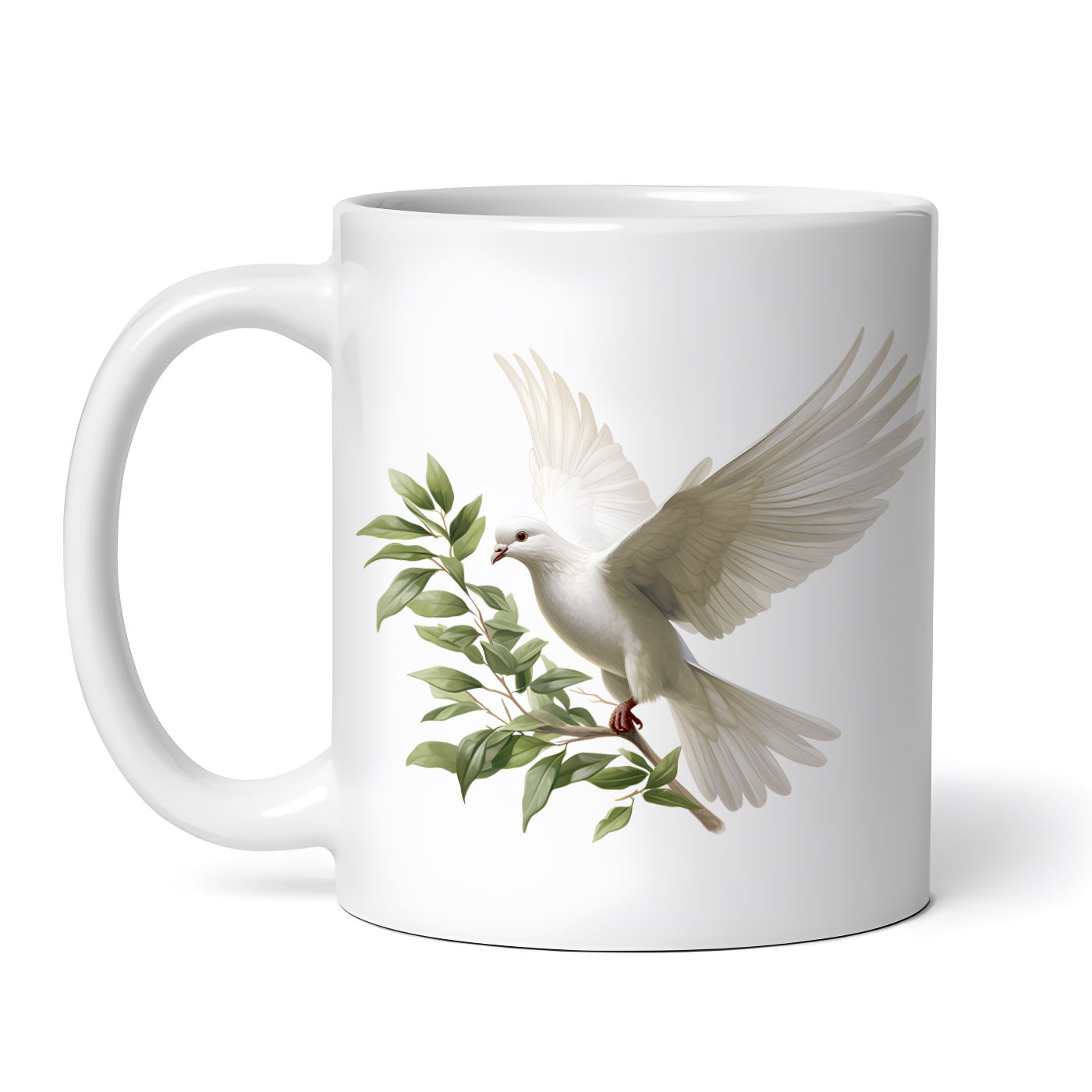 Cana ceramica, Porumbel alb pe creanga, NO268, 330 ml, Multicolor