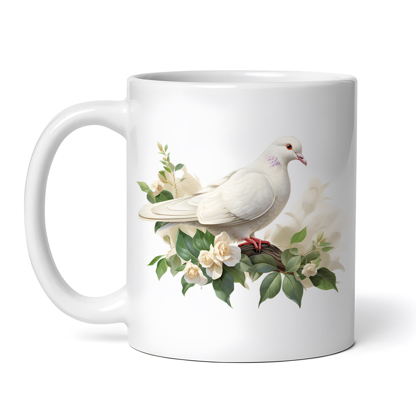 Cana ceramica, Porumbel alb si flori albe, NO1502, 330 ml, Multicolor