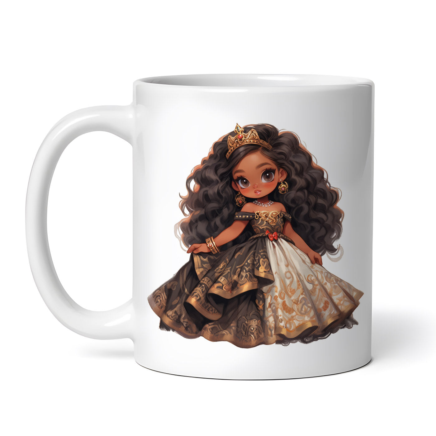 Cana ceramica, Printesa cu rochie maro, NO3159, 330 ml, Multicolor