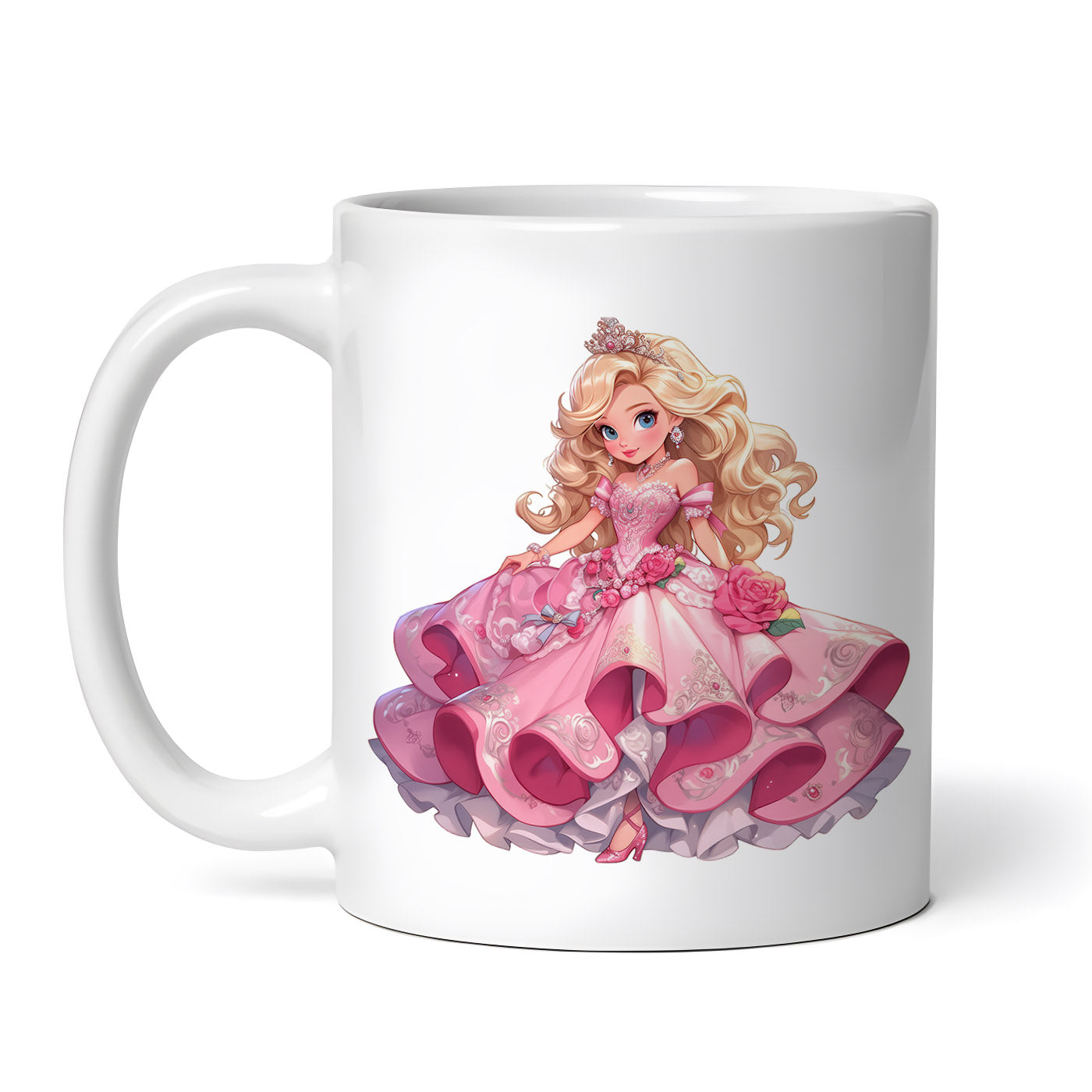 Cana ceramica, Printesa cu rochie roz cu trandafiri, NO738, 330 ml, Multicolor