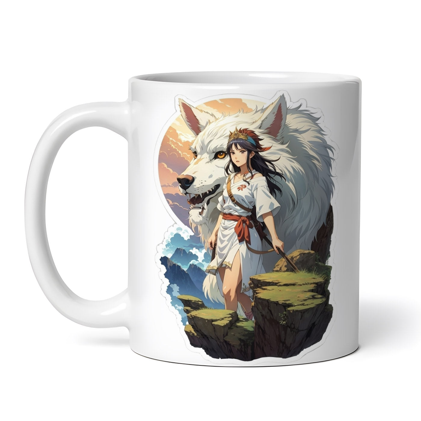 Cana ceramica, Printesa Mononoke cu lupul , NO7355, 330 ml, Multicolor