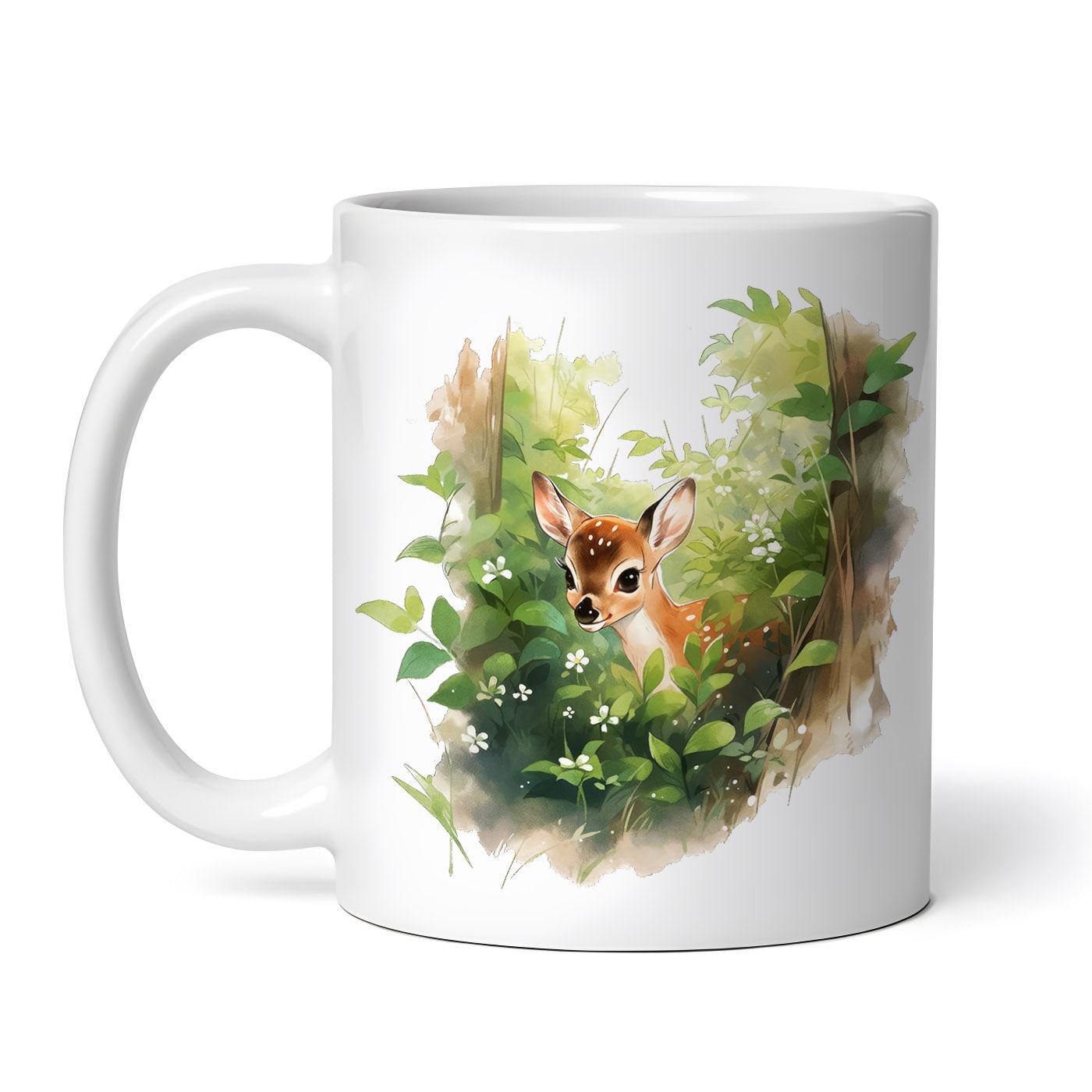 Cana ceramica, Pui de caprioara, NO1068, 330 ml, Multicolor