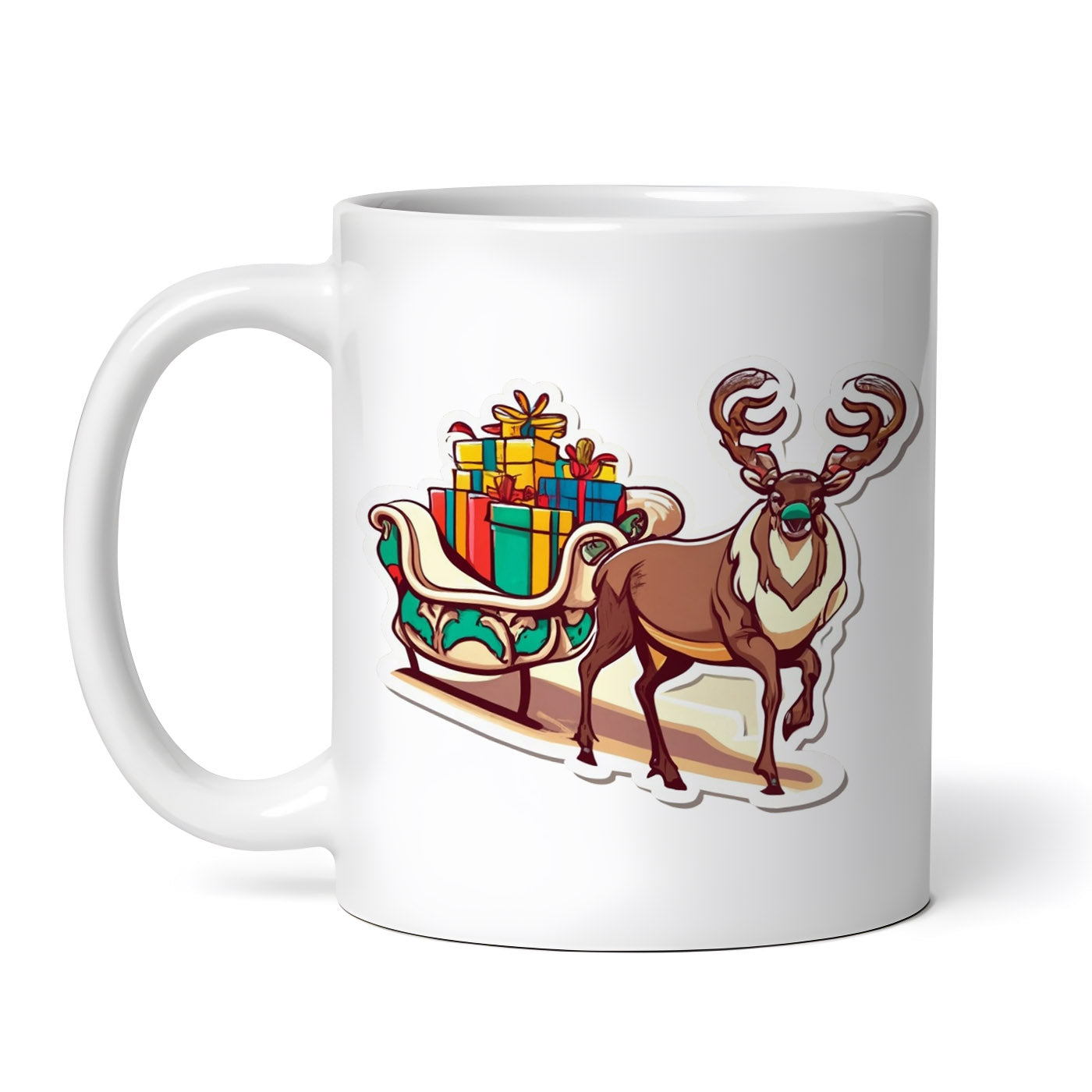 Cana ceramica, Renul cu sania plina de cadouri, NO6271, 330 ml, Multicolor