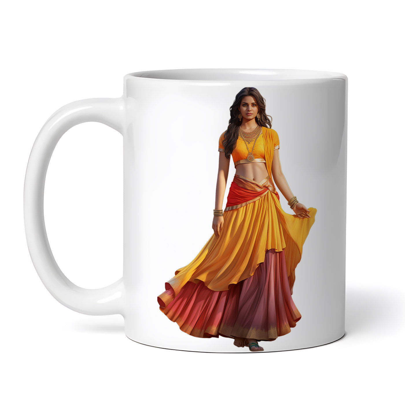 Cana ceramica, Rochie indiana galbena, NO037, 330 ml, Multicolor
